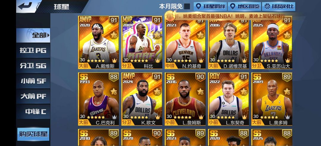 可排位 8天选sga亚力山大浓眉司机欧文新科比约基奇goat詹东契奇红毛大虫典藏海报专属潮服名片特效