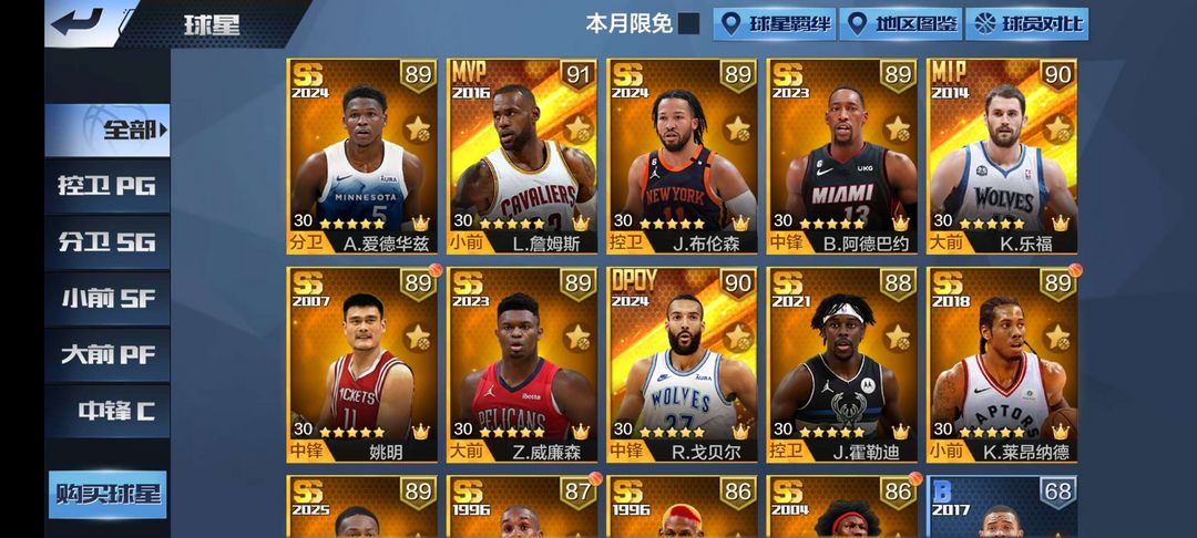 华子★阿德巴约★布伦森★胖虎★大虫★霍乐迪★猛龙卡晋升全力詹★戈贝尔★乐福