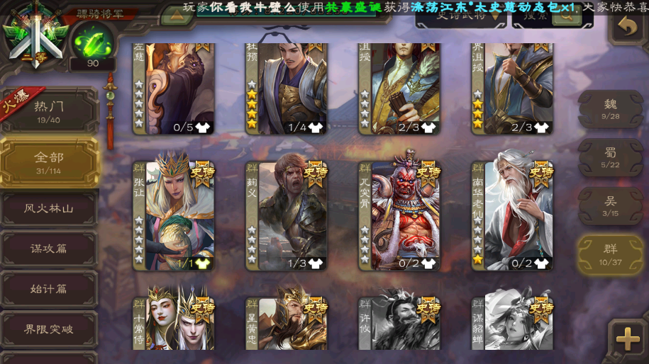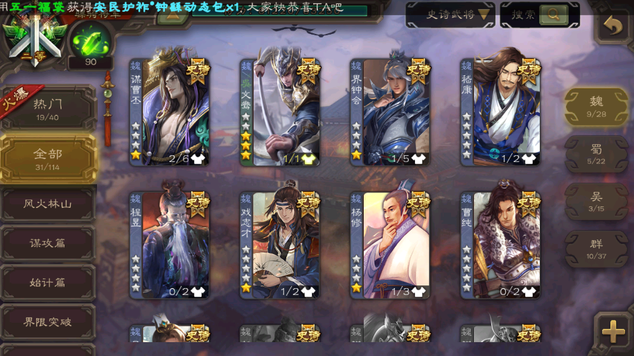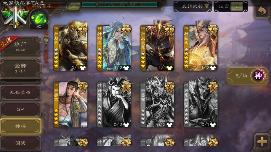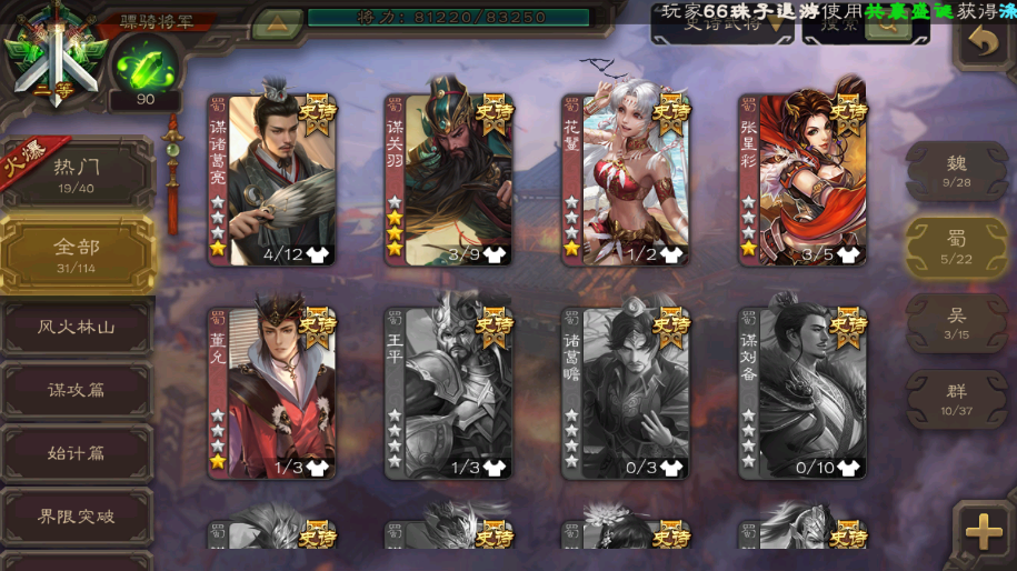 神鲁肃◆动神郭嘉◆动神荀彧◆动谋曹丕◆回廊文鸯◆谋诸葛亮◆谋关羽◆十常侍◆回廊杜预◆界徐盛(大宝)