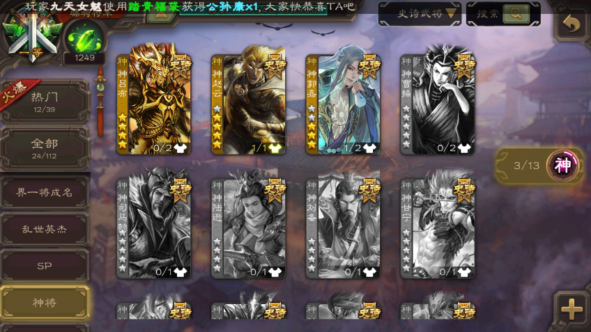 有点将卡◆动神郭嘉◆势若万钧回廊文鸯◆回廊杜预◆界钟会◆界徐盛(大宝)许攸◆动神赵云◆神吕布