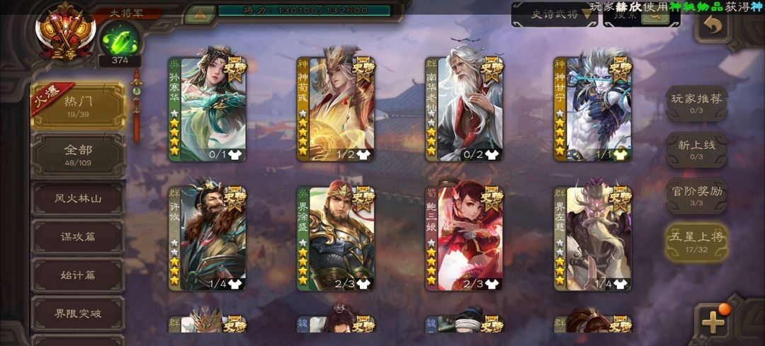 二等大将军【有点将卡】49史诗炎龙动刘焉☆动神荀彧☆动神甘宁孙寒华动神赵云动戏子马均动态鲍三娘界徐盛