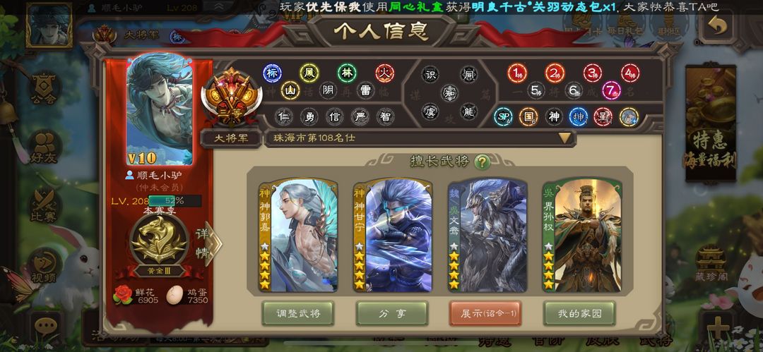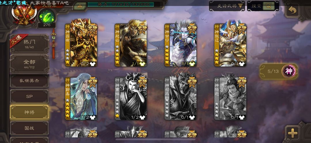 装备描述:官服个性大将军。动态谋诸葛亮 势若万钧回廊文鸯 潜蛟窥天回廊界钟会 动态神郭嘉 动态神甘宁 界沮授 裴秀 界左慈 大宝界徐盛 南华老仙 动态戏志才 祢衡 动态神赵云 动态星甘宁 动态许攸 界李儒等47史诗热门大将军