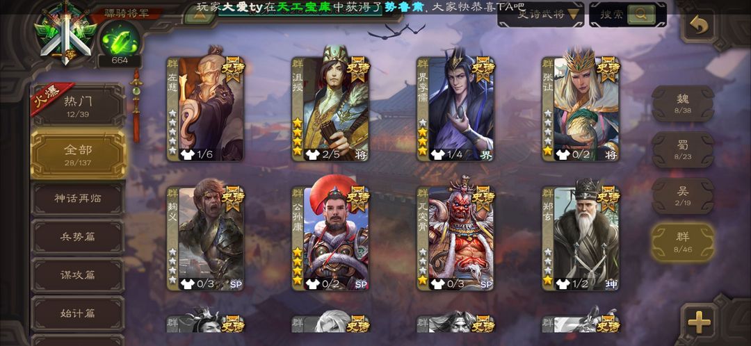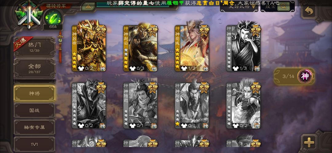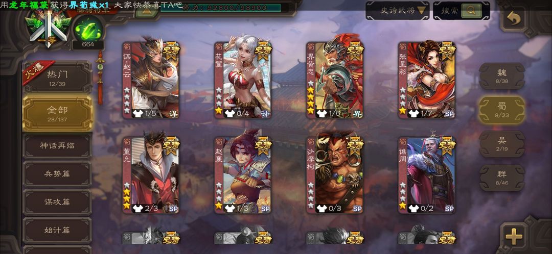 【有卡】动神荀彧 曹髦 文鸯 大宝 郑玄 戏志才 神赵云 界黄忠 沮溲 张让 公孙康 花蔓 谋赵云