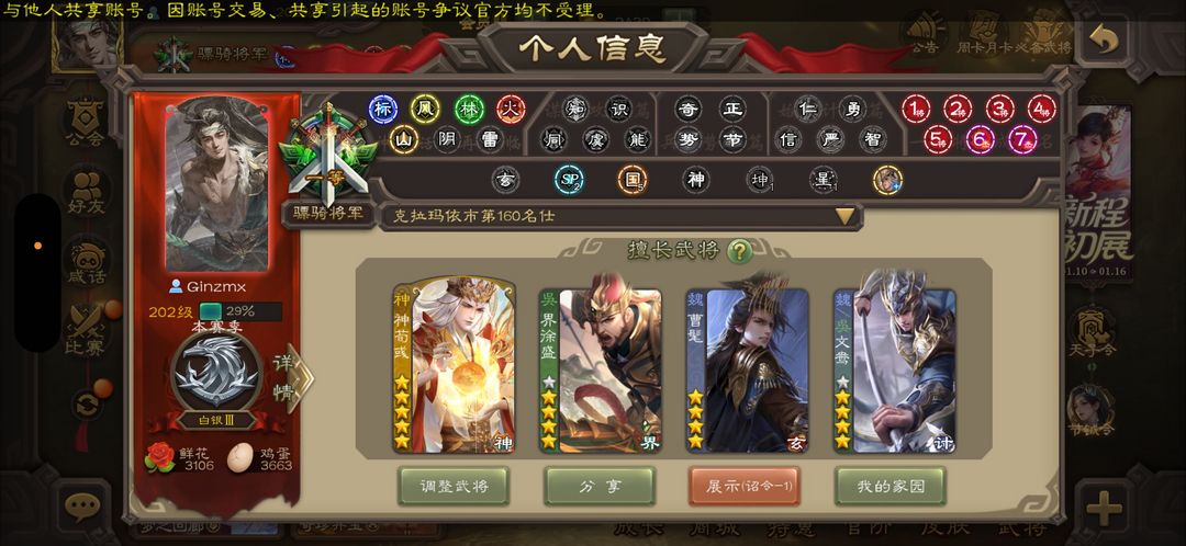 装备描述:诸将军惠顾鄙号,租赁频仍,生意兴隆,照顾有加。鄙人感激涕零,愿长久合作,共谋大业。谢过 ! 军八 斗地主爽号 三国杀移动版官服 如果各位将军喜欢本号 麻烦你们点点关注 后续我们如果有低价好号 就会立即推送给你们哟 比心