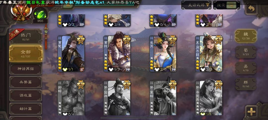 装备描述:军八女皇崔芙枭龙破渊双形态曹髦火龙果势魏延动戏志才动王元姬大宝动许攸动界李儒动白马