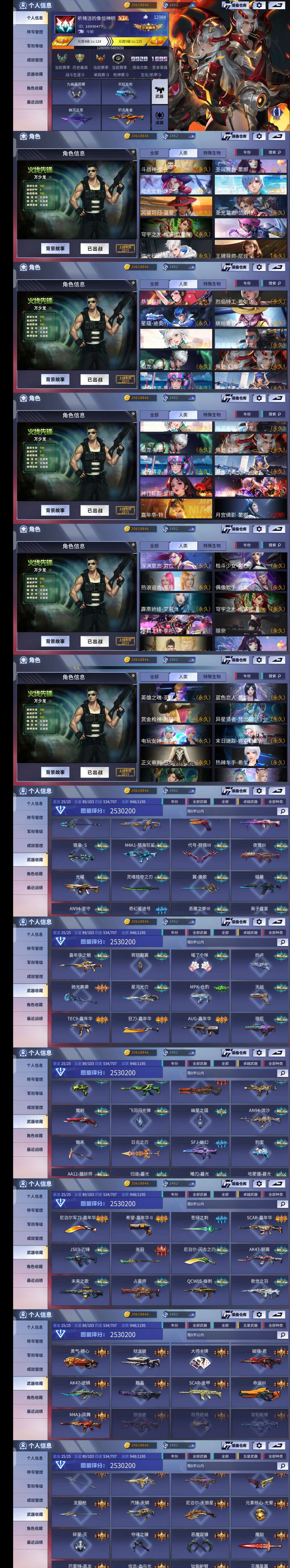 装备描述:小七版本 不是盒子版本❗️❗️❗️ 公测53区顶配号武器配置拉满✨ 小七版本满配账号「需要在浏览器下载小七手游,在里面下载火线精英,不要登录小七平台,请在游戏内输入账号密码登录火线精英」✨ 253w图鉴评分✨军衔等级124级✨ 满大件武器⚡满臻品皮肤⚡满英雄⚡满元素⚡满星座+星座皮肤⚡满套装⚡满异彩⚡满战魂⚡满精铸⚡满幻神变异体 天惩×6☔羊枪×2☔星战×2☔穹宇雷×2☔ 金甲×18✨镰刀×9✨光晕×9✨风云×6✨魔剑×6✨碎星×6✨护臂×4✨灭魔×3✨天虹×3✨狱龙破×3✨共计146五星(包含五星皮肤22个) 时间到了如果没下一个租客可以继续玩 是会送时间的 但是有下一位租客请自觉下号,发现挤号立即拉黑⚠️各位老板可以把版本留下,后续新武器都会更新 此号长期出租❗️❗️❗️❗️❗️ 祝各位老板玩的开心❤ 账号充值过万,已在公安局备案,禁止开挂 ✨更新AK47-龙有逆鳞✨ ✨更新神话手雷-九幽晶冥蝶✨ ❤更新角色镭龙五阶❤ ❤更新传世五星-无痕❤ ❤更新不灭英魂-千里龙驹❤ ❤更新传世五星-赤血征程❤ ❤更新传世五星-冲击之刃❤ ❤更新全新机能重塑 鳞王诏令❤