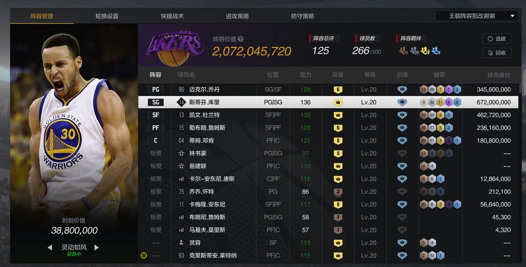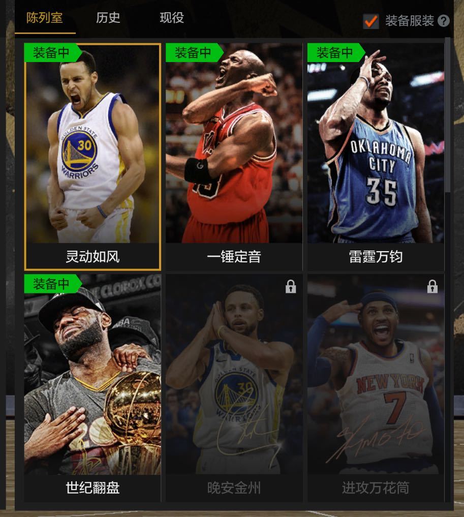 装备描述:22满突小时刻库里、杜兰特,6突陈列室小时刻乔丹、詹姆斯,5突新邓肯、安东尼,多套服装、篮球、场地、音效等。