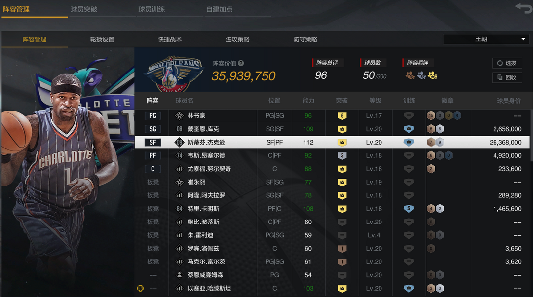 限制: 租号5次及以上 |装备描述:【斯蒂芬杰克逊】满突武圣,带王朝阵容 可以打排位赛,街头段位:当家球星,王朝段位:职篮新秀 信誉分:100,更新时间:1.13 请勿消极游戏、强退游戏等扣罚信誉分行为,最后几分钟请勿再开始排位或者匹配,希望您开一把自定义,感谢您的配合与理解。
