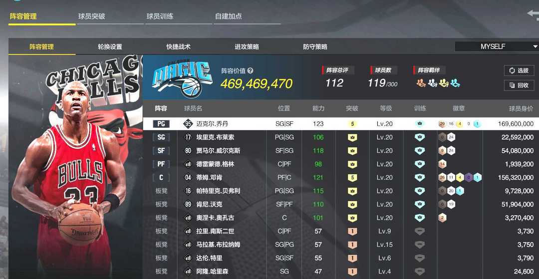 4.7e阵容号可排位⭐8突迈克尔乔丹8突蒂姆邓肯 x历史威尔克斯 x历史肯尼沃克 血布布莱索 贝弗利