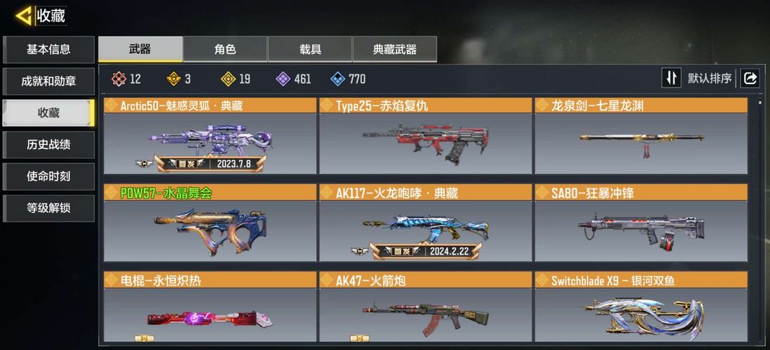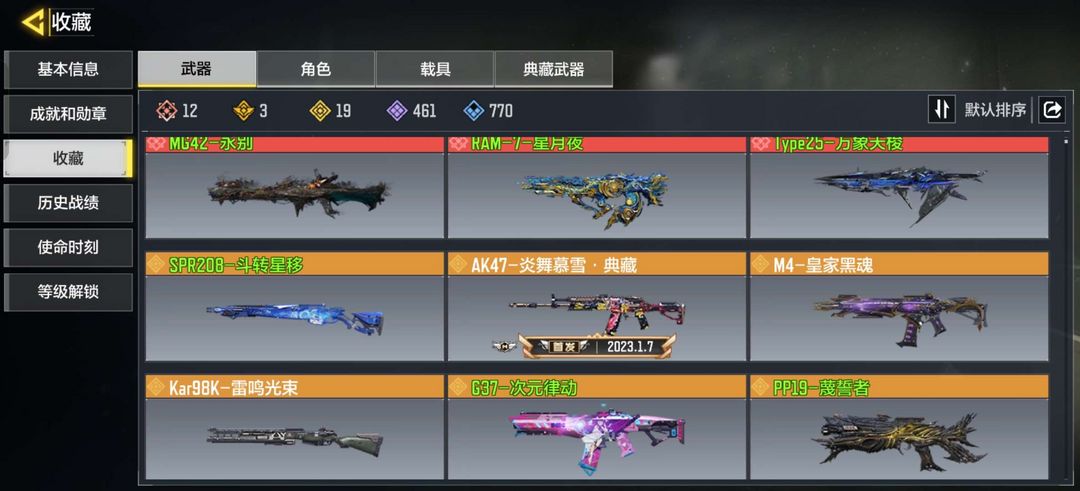 1个满级神话角色,武器无满级,12把神话枪