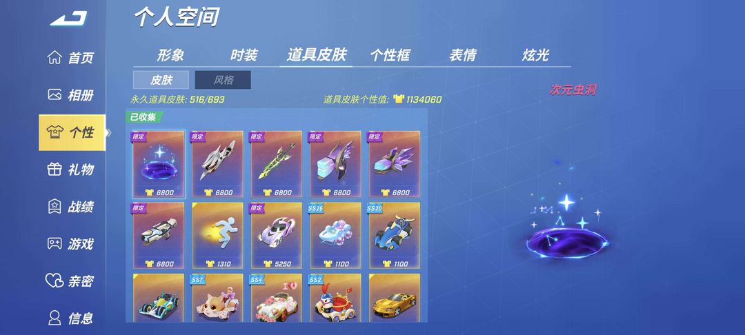 218万个性,全赛季皮肤,限定,星耀,绝版皮肤,516个道具皮肤,皮卡十级小粉鸭,粉色泡泡自走球