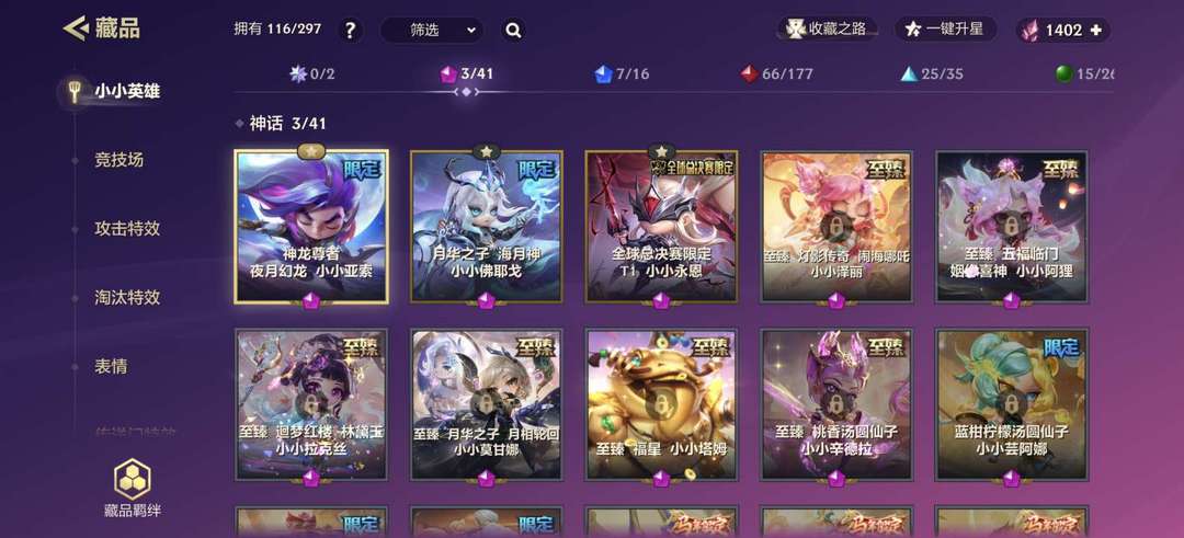 三个神话皮,有亚索和永恩,还有佛耶戈七个小小英雄