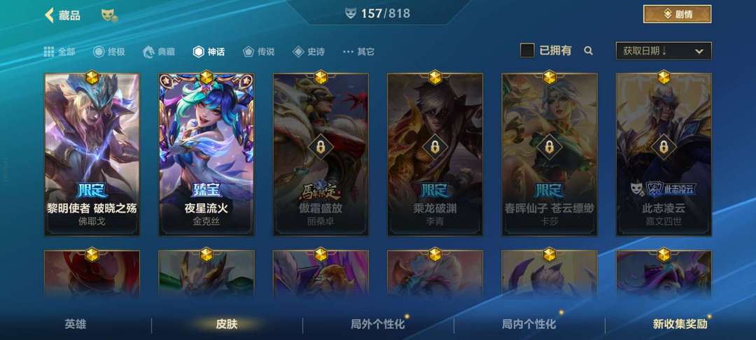 ❤️可排位❤️皮肤159个❤️2神话❤️16传说❤️佛耶戈破晓之殇❤️金克丝夜星流火❤️雷克顿源计划
