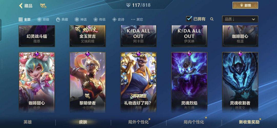可排位 水晶歌姬/情限告白ez/兰亭序亚索/流光仙韵莫甘娜/斗魂莎弥拉/全套咖啡甜心 国标万战佐伊