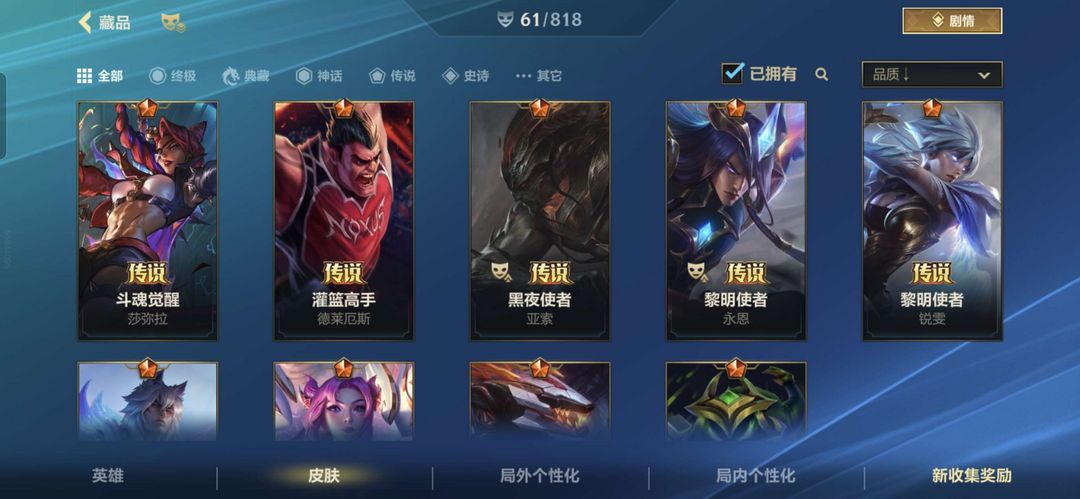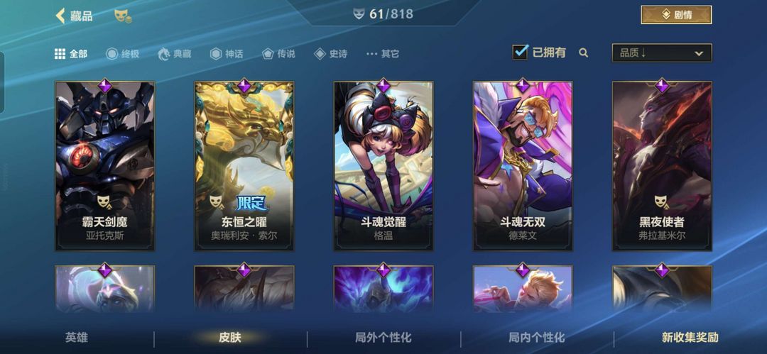 装备描述:多个传说皮限定皮,翡翠可排位