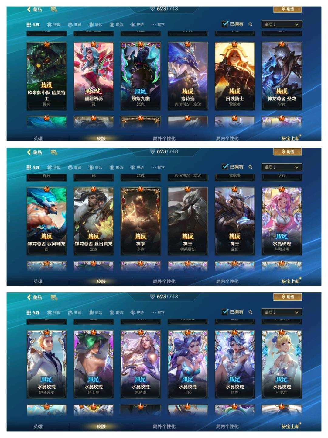 【魂】682皮11收藏分钻石段可排位✨水晶玫瑰套❤️珍藏卢锡安❤️神龙尊者❤️秘灵奇境丨几乎满传说