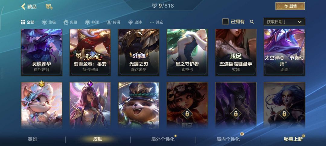 号主是女生,自用辅助排位性价比号,皮肤手感都挺好,猫咪,露露,索拉卡
