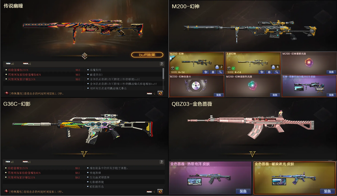 传说幽瞳⭐幻神2023白鲨+音效⭐G36C幻影QBZ蔷薇裁决3柯尔特USP雷暴⭐炽芒蝶刃+炼狱6盘龙