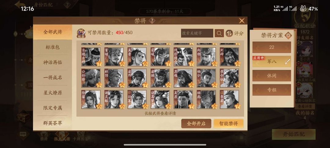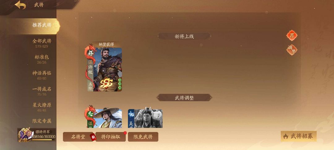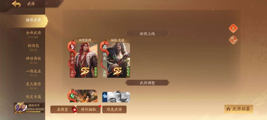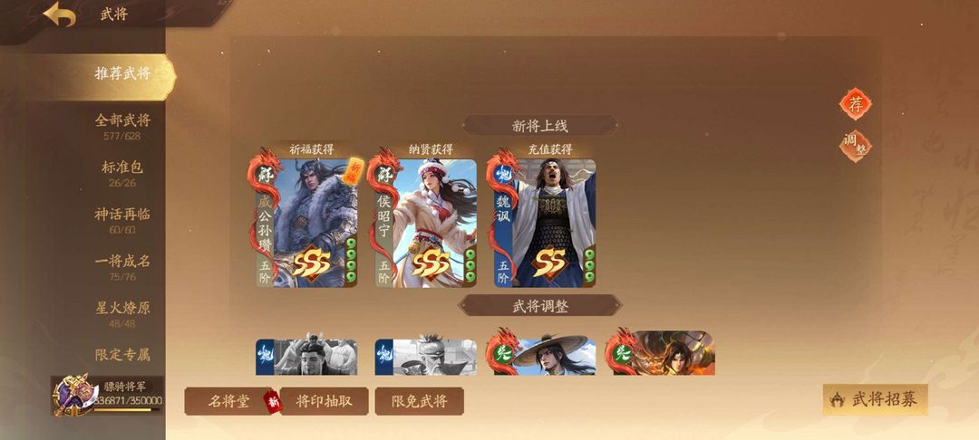 577将,2武庙,8大谋,9威,新将全拿,威孙尚香、威孙策都有