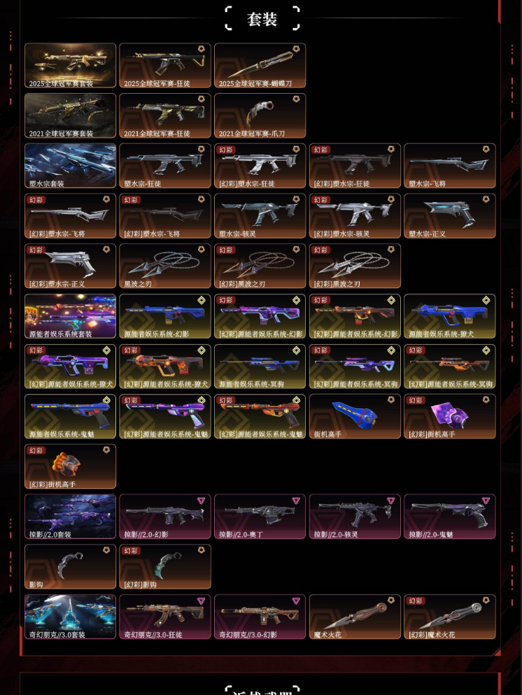 装备描述:2025全球2021全球朋克3.0掠影2.0塑水宗源能者娱乐系统超限闪存匕首奇点2.0蝴蝶刀剥皮小刀末日泡泡幻影滋滋特攻队狂徒光荣异象狂徒显卡狂徒混沌序曲2.0撩犬混沌序曲2.0幻影洪荒怒焰狂徒洪荒怒焰幻影奇点幻影艾莉沃的梦之翼狂徒异鳞魔蛇幻影堕天遗武狂徒般若假面2.0狂徒紫阙金琅狂徒盖亚的复仇狂徒侦察力量幻影掠影狂徒显卡3.0莽侠归零者冥驹偃月苍龙冥驹堕天遗武冥驹机动狂飙蜂刺全息波普判官混沌序曲2.0正义西部未来正义归零者短炮奇点正义超时空卫队鬼魅天界神兵鬼魅离子武器正义