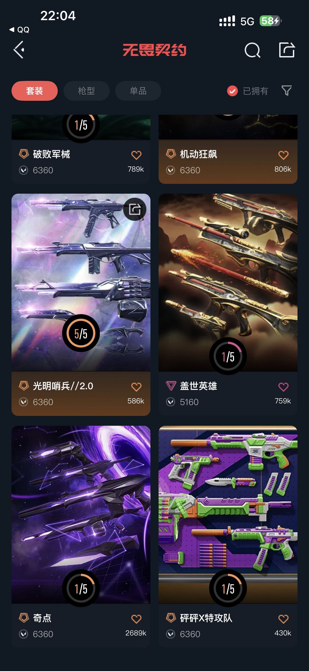 装备描述:全套塑水/光明哨兵2.0/机动狂飙/盖世冥狙/破败戍卫/奇点战神/特工队奥丁/可排位