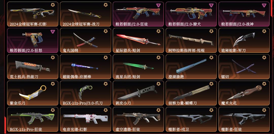 装备描述:可排位✨ 8w库存/1700R✨2024全球冠军赛套装/般若假面2.0套装 ✨镭切,紫金爪刀,RGX-11z-Pro//3.0-爪刀,剥皮小刀,侦察力量-蝴蝶刀,魔术火花 ✨RGX-11z-Pro-狂徒,电音光谱-幻影,虚空遗器-狂徒,噬影者-戍卫,噬影者-狂徒,混沌序曲-狂徒,洪荒怒焰-狂徒,塑水宗-狂徒,2025全球冠军赛-狂徒,离子武器//2.0-狂徒,堕天遗武-狂徒,天界神兵-戍卫,盖亚的复仇-狂徒,侦察力量-幻影 ✨神中神罚-莽侠,堕天遗武-冥驹,盖亚的复仇-飞将,起源-冥驹,离子武器-冥驹 ✨VCT25-x-EDG-标配,VCT-x-EDG-标配,西部未来-正义,光明哨兵-正义,毁灭骑士-正义,破败军械-鬼魅,奇点-正义,天界神兵-鬼魅,盖亚的复仇-鬼魅,离子武器-正义 ✨