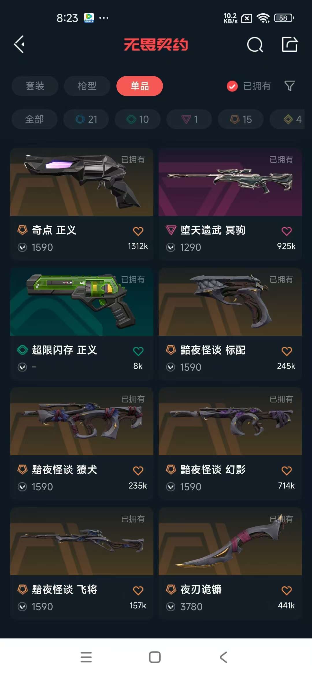 传奇数量:15