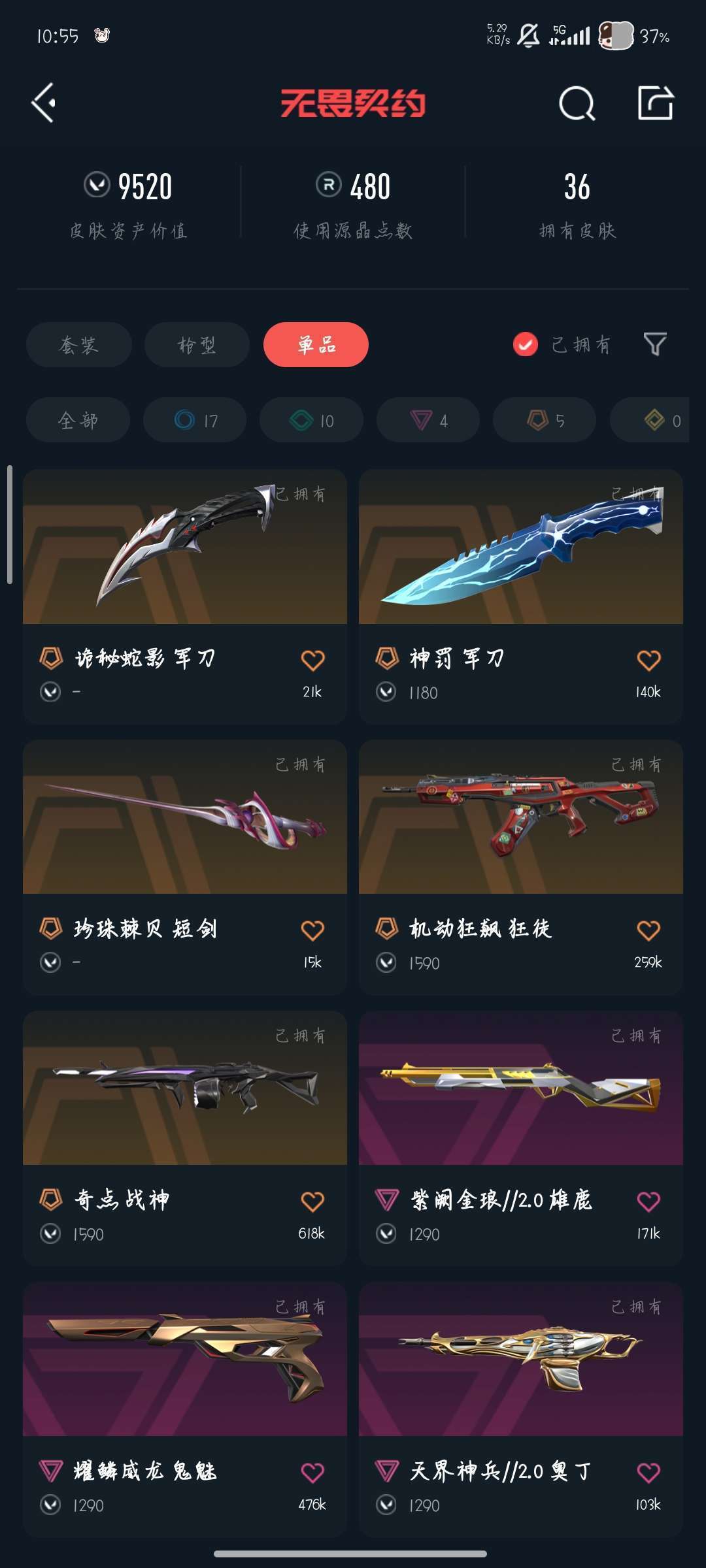 有36个皮肤,主要皮肤有神罚小刀,侦查力量幻影,摩托ak,奇点战神等,英雄全可玩,可打排位,高校特权