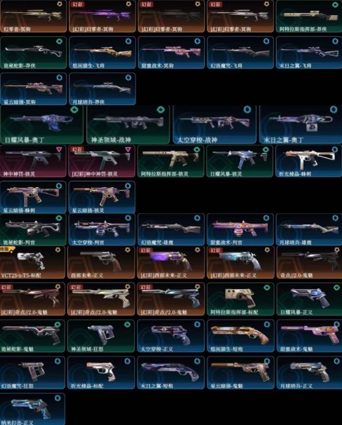 可排位全炫彩/25爪刀/光荣/混沌/全息/离子/紫金/盖亚/威龙/异鳞/侦察/天界/归零大狙西部正义