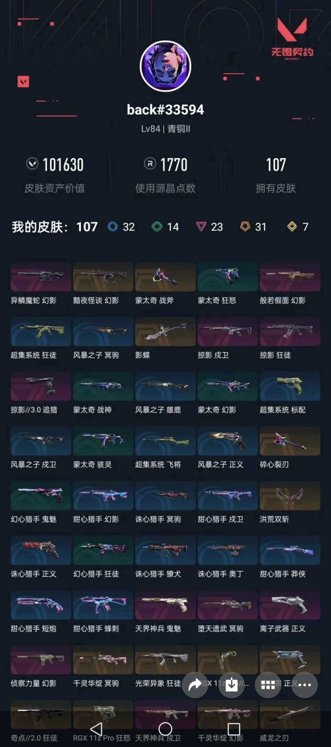 武器皮肤数量:107