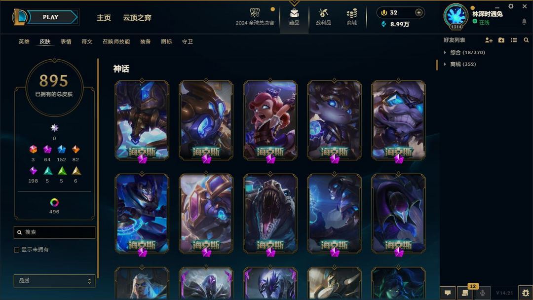██ 全英雄 1600皮丨80神话丨可排位丨44至臻丨金卡莎丨神龙李青丨玉剑男刀丨莲华永恩亚索