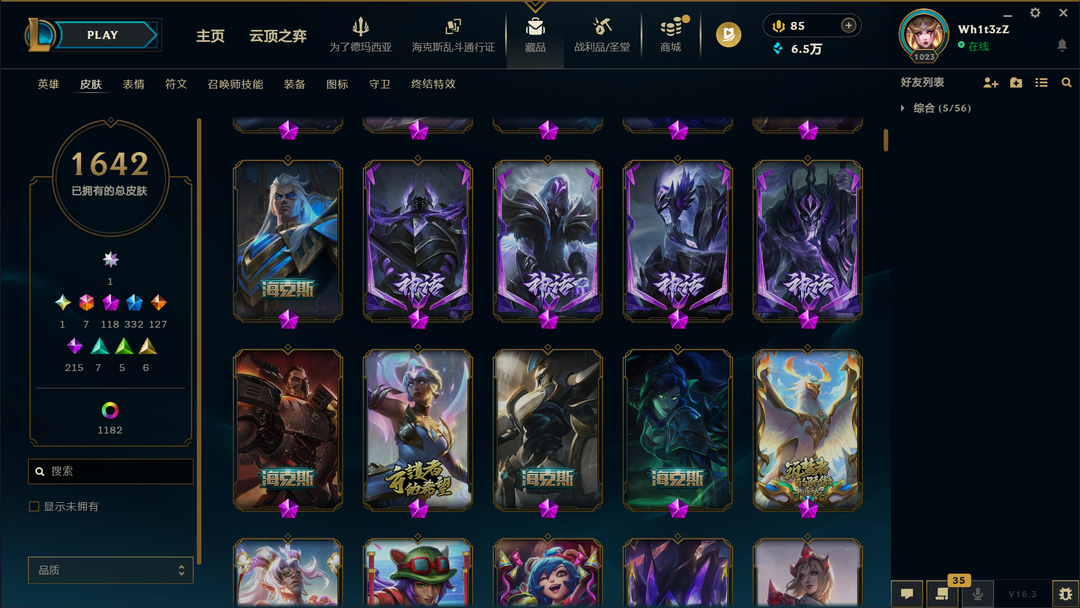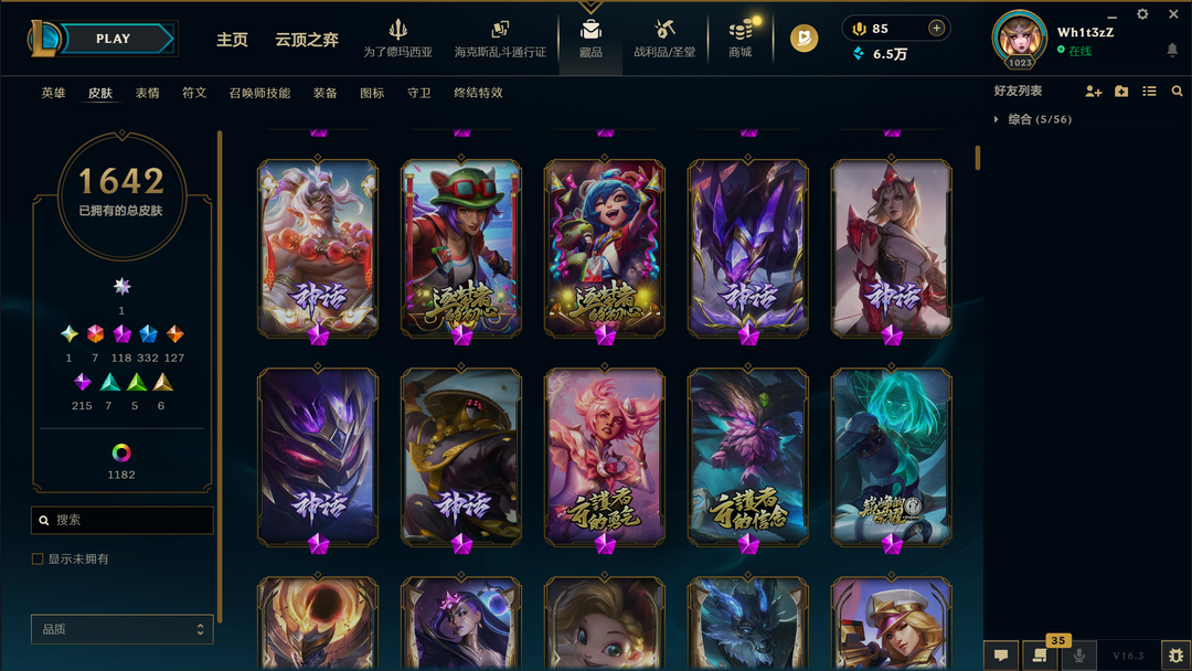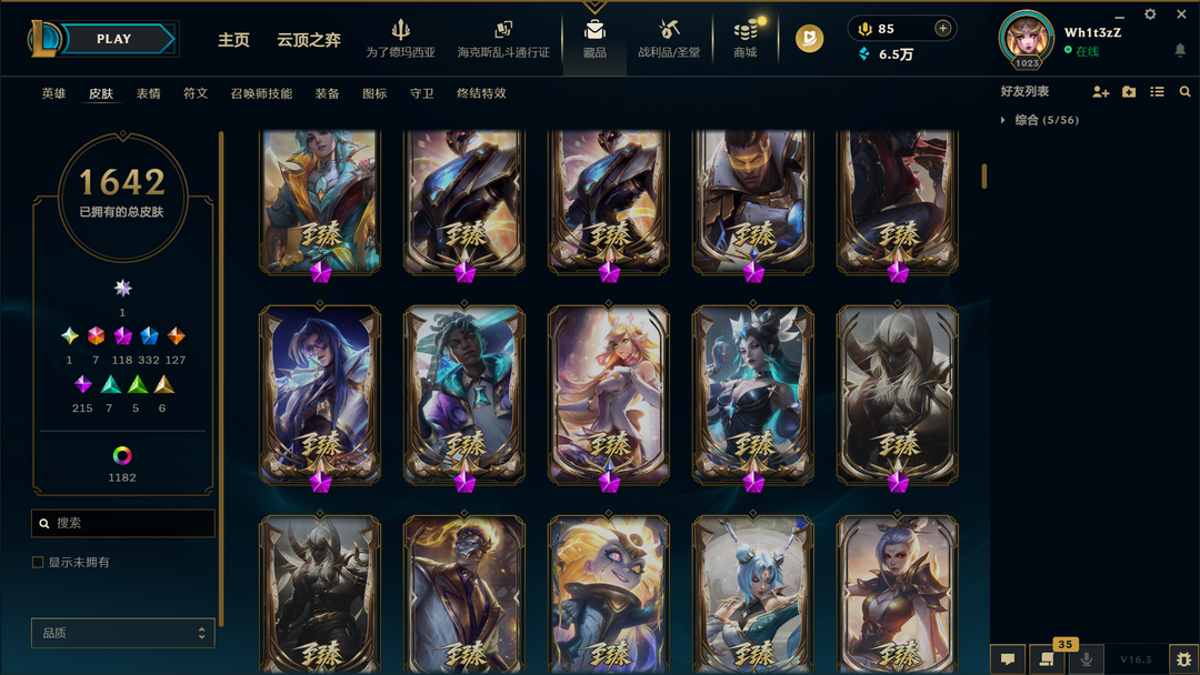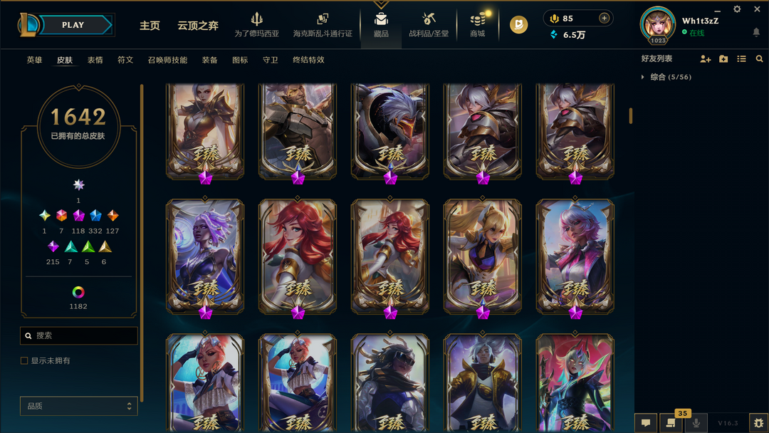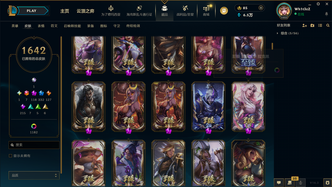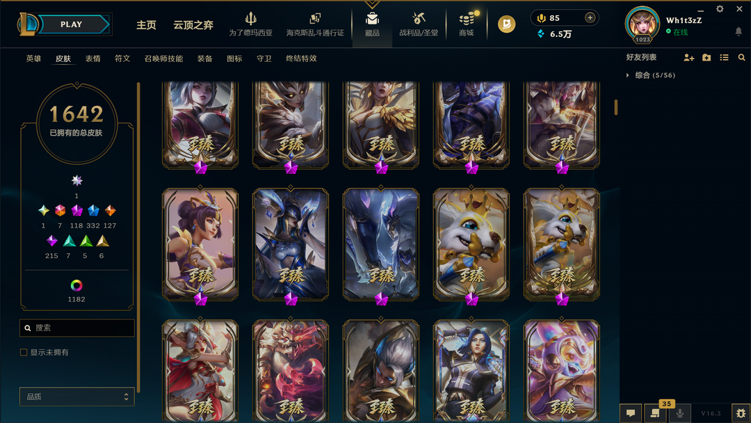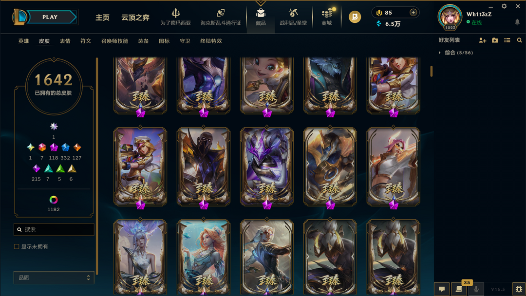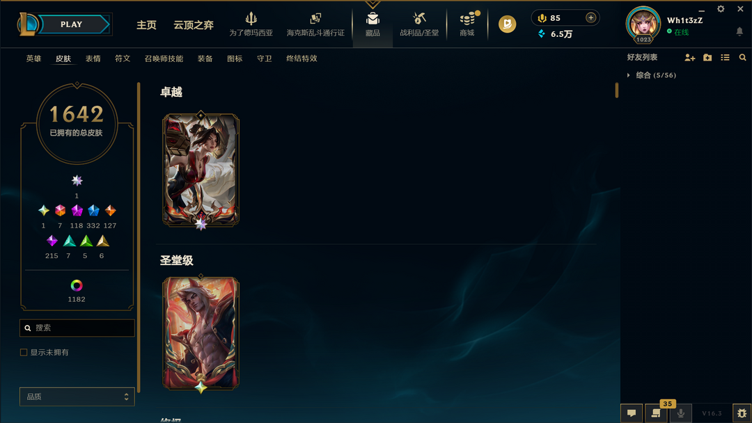 装备描述:1650原皮❤1000炫彩❤殿堂卡莎❤圣堂黑夜亚索❤圣堂金蛇瑟提❤圣天龙盲僧❤龙瞎臻彩❤双城2杰斯
