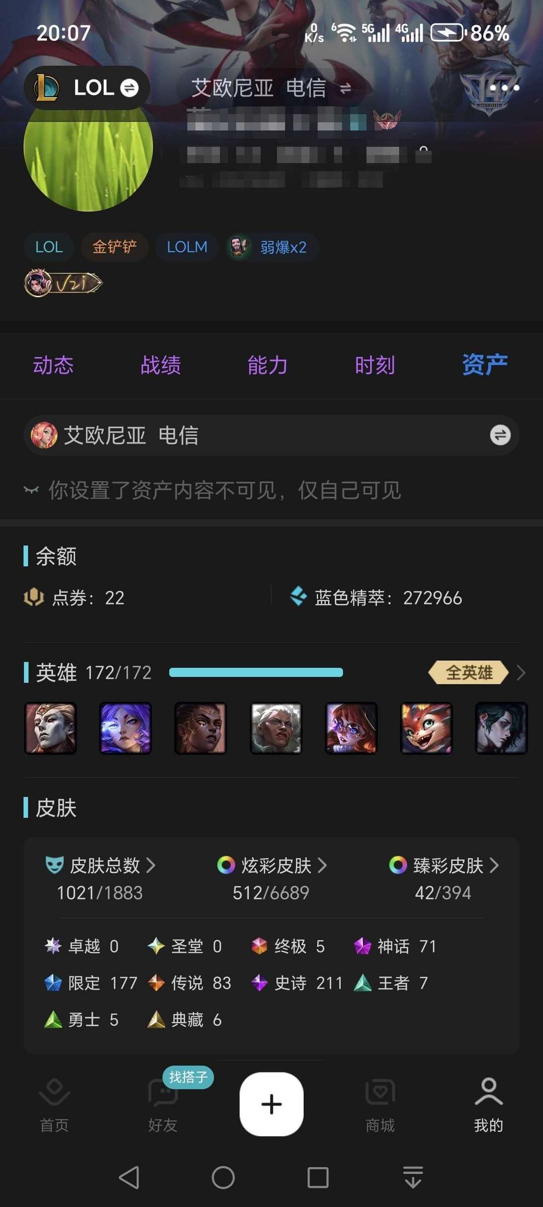 装备描述:艾欧尼亚千皮号,全英雄172,含5终极、71神话、177限定,多区可登(其他区配置不同),云顶黄金,禁排位,押金保障,安全上号。 1. 已开启安全中心登录保护、游戏锁,禁止异地登录与改密操作。 2. 已锁定绑定权限,禁止任何解绑、重绑操作,保障账号控制权。 3. 禁止使用外挂、脚本、恶意掉分等行为,违规将导致账号封禁并追责。 4. 仅支持正常娱乐游戏,违规操作将立即终止订单并上报平台处理。 禁止利用账号进行开挂、使用辅助违规软件诈骗等违规操作。毁号行为涉及毁坏虚拟财产罪及计算机安全罪,请文明游戏素质游戏,让我们共建美好租号平台!