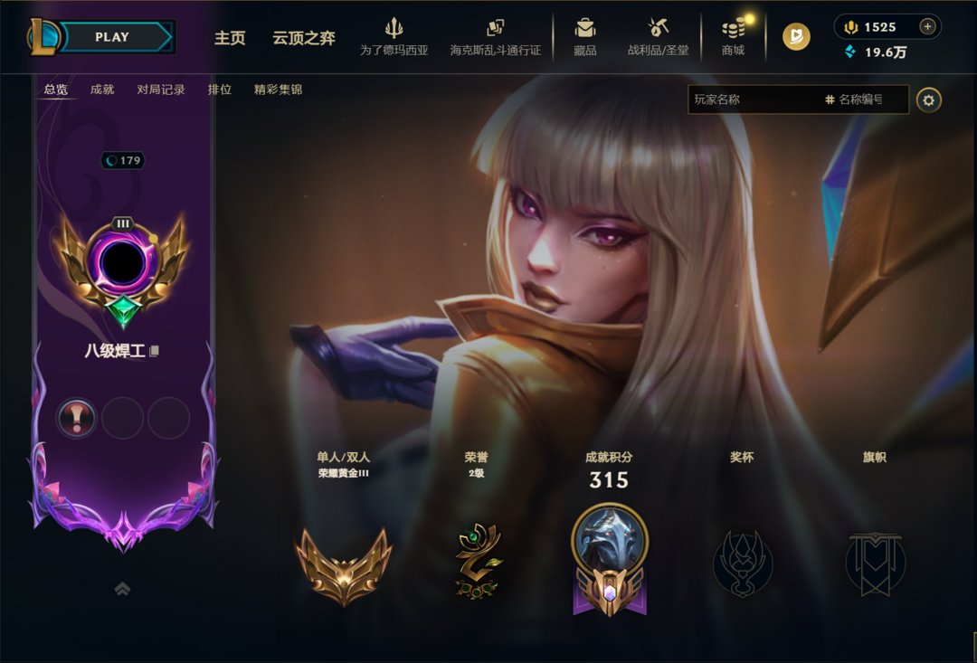 段位:179级 荣耀黄金III