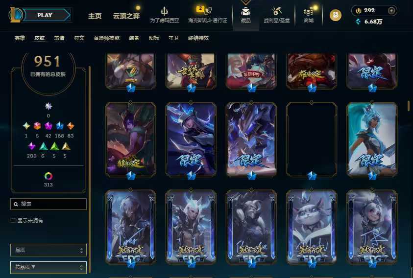 951原皮313炫彩⚡金蛇巨星瑟提⚡60神话40至臻⚡EDG冠军套⚡