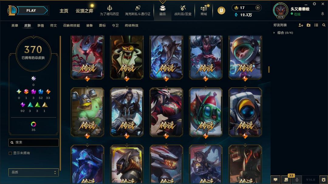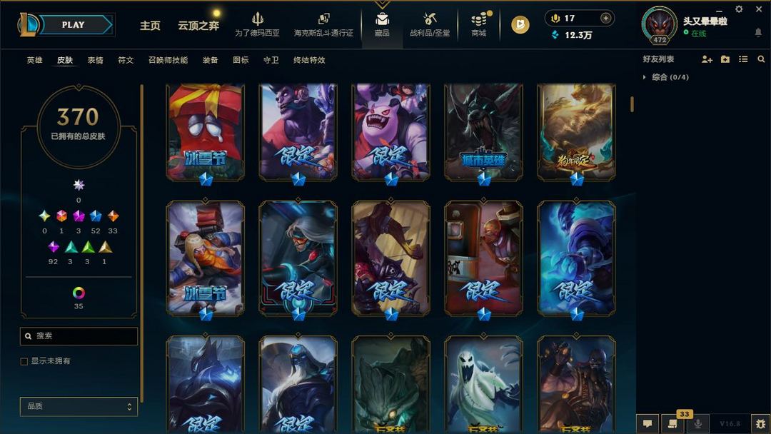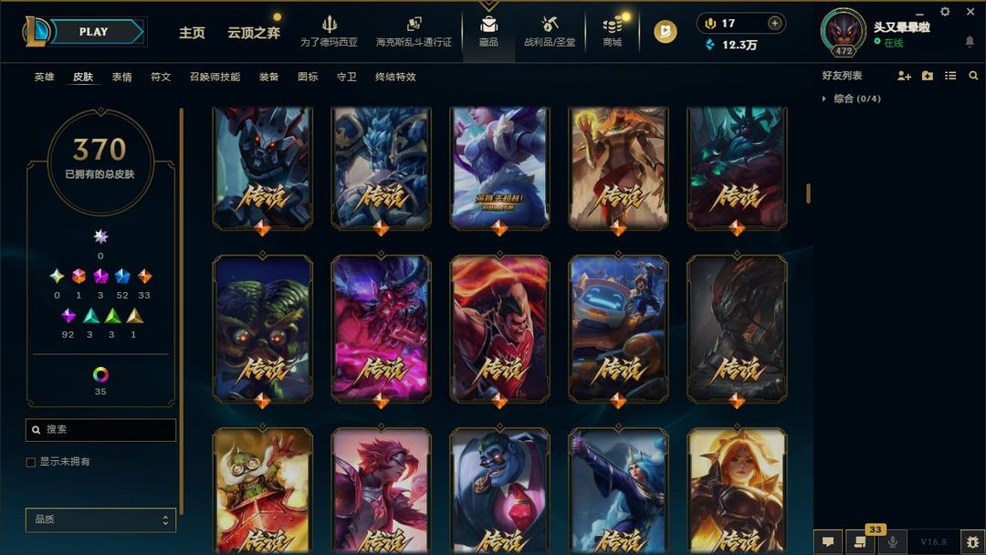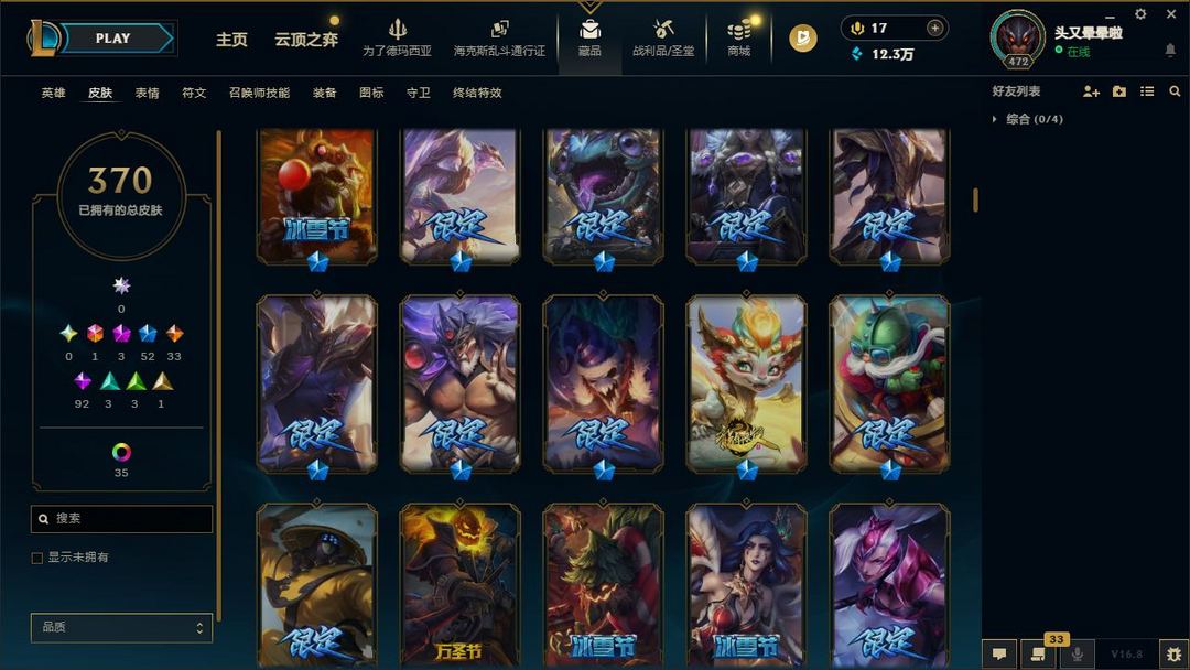 【LOL大王】400P乄370原皮乄35炫彩乄3臻彩乄3神话乄52限定乄黑夜亚索乄神龙瞎子