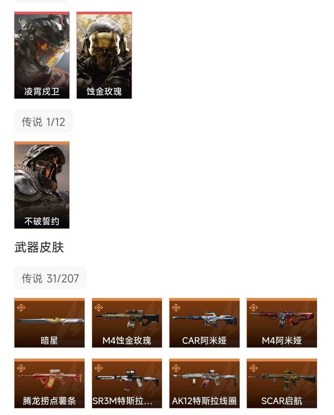 装备描述:凌霄戍卫,蚀金玫瑰,暗星,30款传说枪皮,s8赛季2×3保险箱