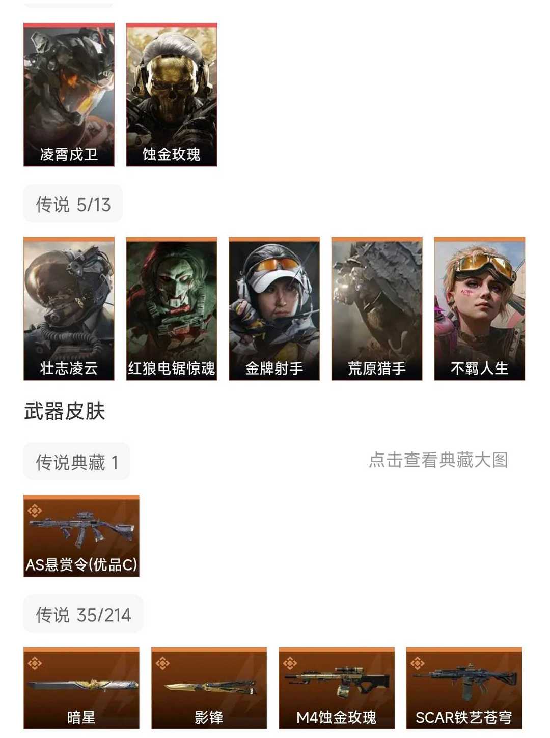 皮肤号 as典藏暗星蝴蝶刀凌霄戍卫,蚀金玫瑰,35款传说枪皮