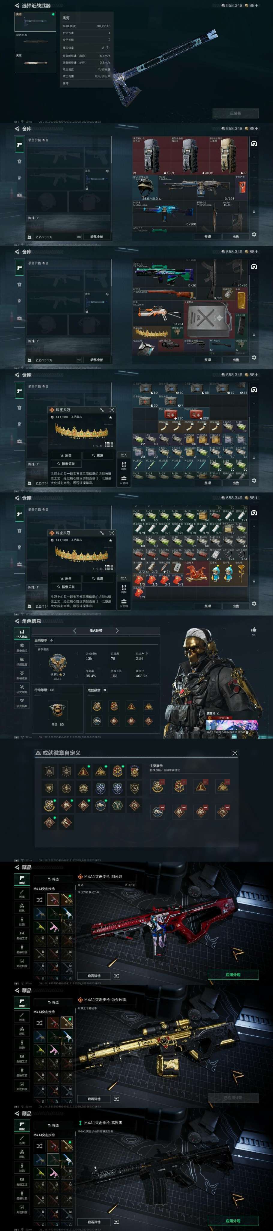 皮肤号 猛攻开黑体力3/负重3/红狼-蚀金玫瑰/深蓝-不破誓约/黑海/黑鹰。充值金额上w,开挂必追