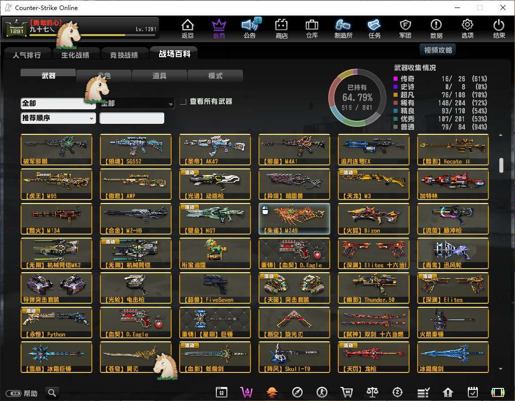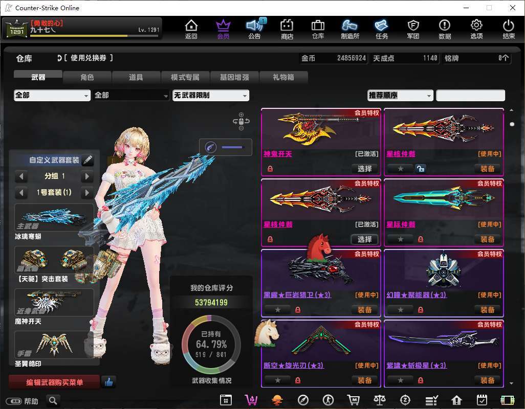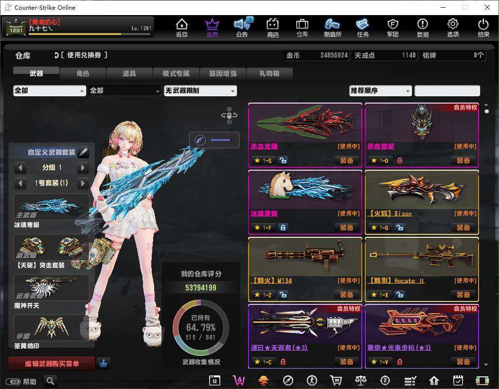 装备描述:2-5月,紫钻,全武器可玩,最新特典即将到手,祝大佬们愉快玩耍 各等级配件均为最适合生化z玩家,祝各位爽玩生化z。 灾变角色很多女仆安娜/海灵娜娜/霖/伊琳娜等超多超凡角色。灾变插件全999 四月九号准时补上次元裁决,更新博士