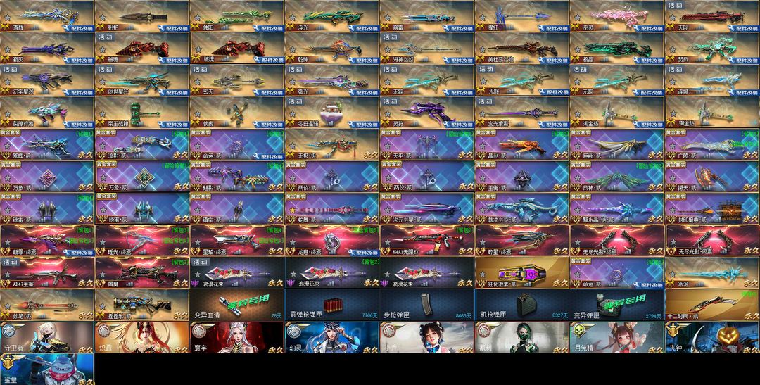 装备描述:配件✨清辉丨影护丨烛阳丨浮光丨崩雷丨猩红丨巫灵丨天际丨寂灭丨破魂 x2丨乾坤丨海神之怒丨美杜莎之吻丨棱晶丨焚风丨幻宇星涡丨创世星环丨玄天丨弧光丨无踪 x3丨连城丨裂隙行者丨帝王战锤丨伏虎丨冬日温情丨灵狩丨含光承影丨淘金热 x2丨戏法幻刃丨 彩金✨流影贰丨命运贰丨无极极丨天平贰丨晶刹贰丨巨阙贰丨广陵贰丨万象贰 x2丨魅影贰丨两仪贰 x2丨玉衡贰丨风神贰丨撼天贰丨锁宙贰 x2丨镇宇贰丨蛇舞贰丨次元之星贰丨裁决之炎贰丨黯水晶-绝贰丨封印魔典贰丨 传说✨断罪终焉丨瑶光终焉丨星珀终焉丨龙息终焉丨无限EX丨碎星终焉丨无尽光影终焉 x2丨AK47主宰丨屠魔丨 其他✨浪漫花束 x3丨激素贰丨命运贰丨冰河丨妙笔极丨摇摇乐丨 道具✨变异血清丨弹匣丨 皮肤✨十二时辰·戌丨 角色✨守卫者丨炽霞丨寰宇丨幻灵丨小乔丨氰刺丨月兔精丨丧钟丨鲨皇丨