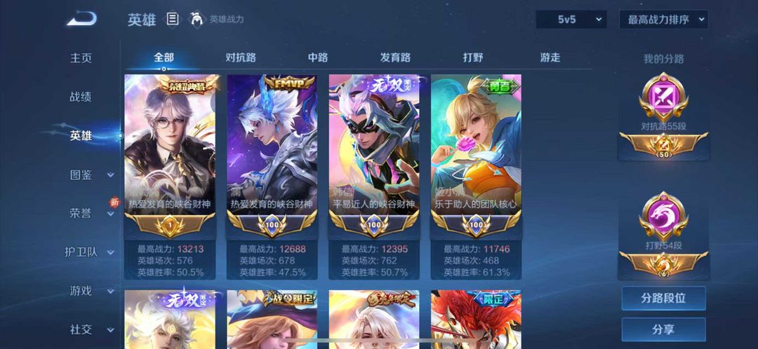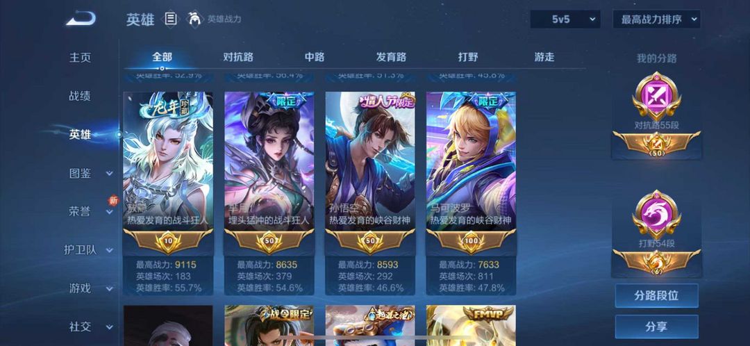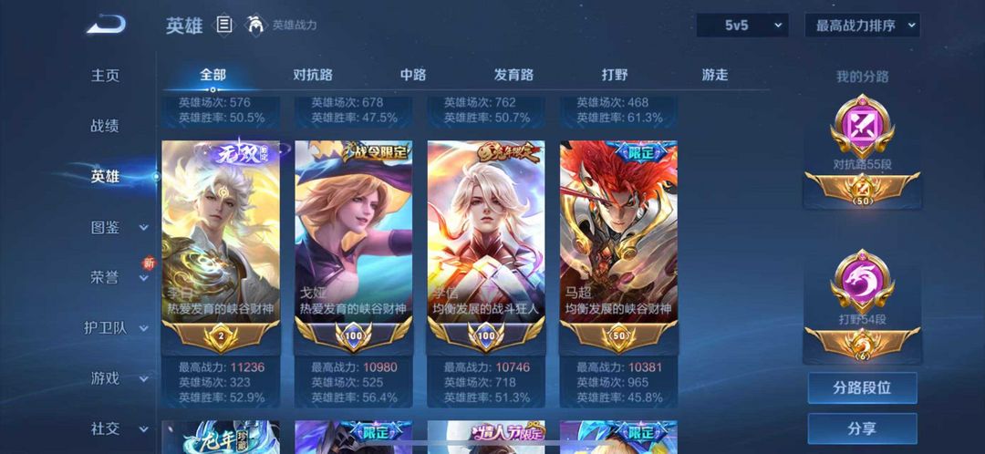 【本周打野巅峰万强九千名♥在榜省服澜诸葛亮李白】小魔方历史五国服♥韩信李白小乔无双巅峰相框♥不可巅峰