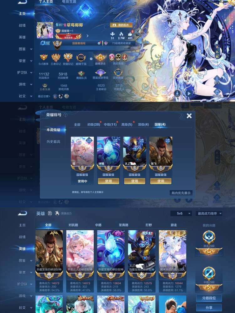 巅峰千强645名❤️11月在榜1.4w大国服瑶|国服张飞|国服钟馗|国服太乙❤️禁巅峰❤️漂亮号