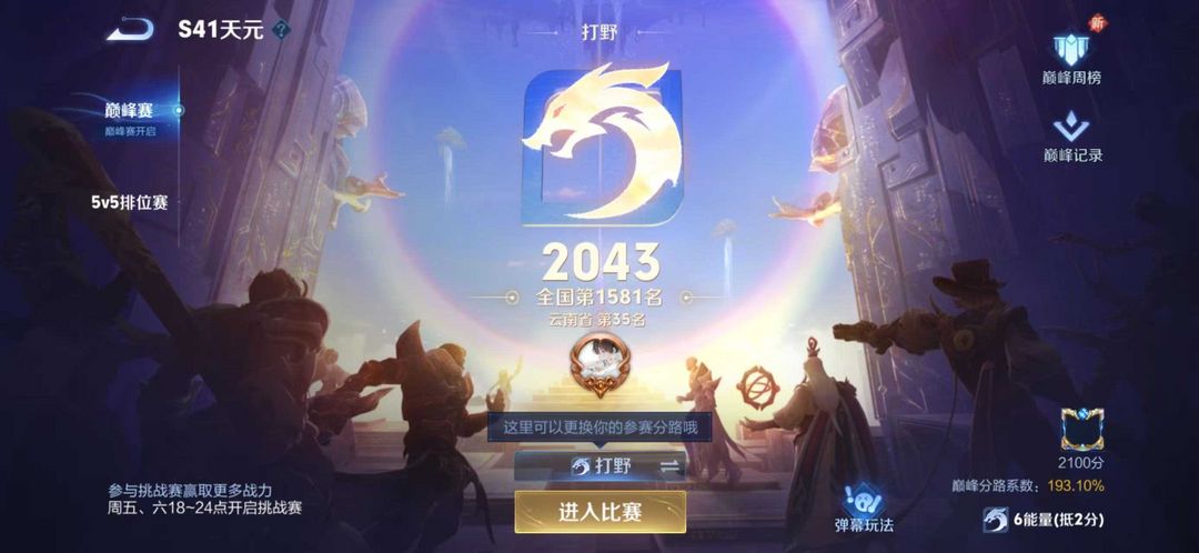 打巅峰赛是孤儿⚡打野路巅峰万强2043闪电框3000名✨在榜省5镜裴擒虎澜✨禁打巅峰赛
