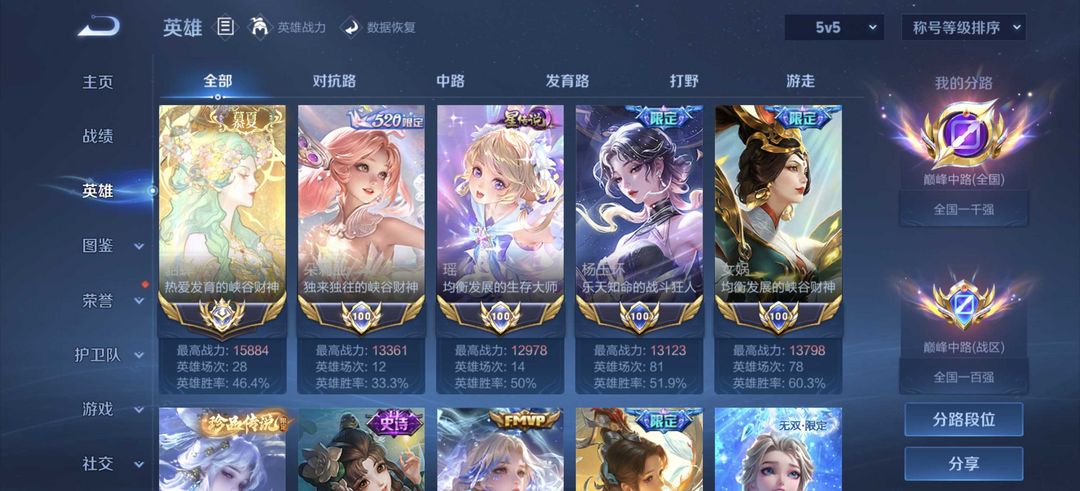 780皮在榜金标杨玉环嫦娥女娲❤️历史八国服巅峰百强中路❤️禁巅峰万强中路❤️满马年限定