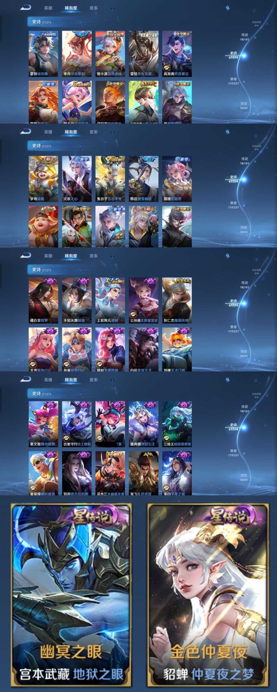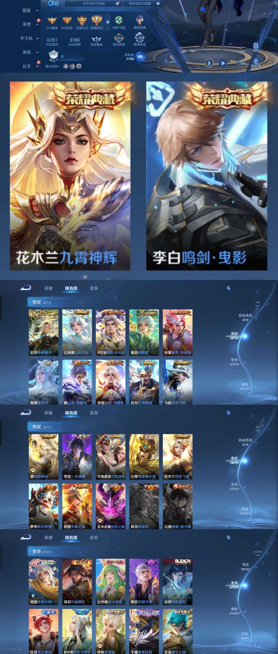 限制: 撤单率<49%才可租用此帐号装备描述:时间到了还登录白玩或者顶号全部改密拉黑处理永不解除,顶号机器会秒禁玩改密,顶号不仅拉黑还没得玩,赚三两块不容易,请理解谢谢。 ❤❤❤❤❤❤❤❤❤❤❤❤❤❤❤❤❤❤❤ 请勿开挂,挂机,送头,骂人,撤单后游戏等如有违规永久拉黑永不解除。 重置二级密码不要费劲了,号主每天都会上号查看,多行不义必自毙,人在做天在看,多做好事多自律,少做缺德事。 该号英雄128个皮肤244个,典藏2个,星传说2个,传说18个,史诗67个,祝您游戏愉快~