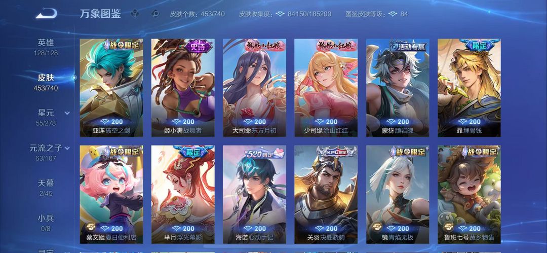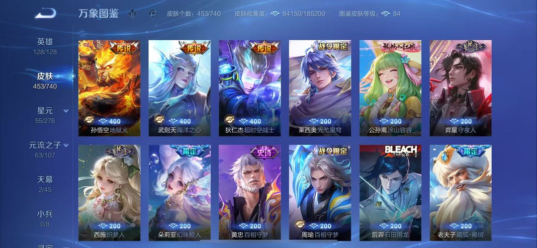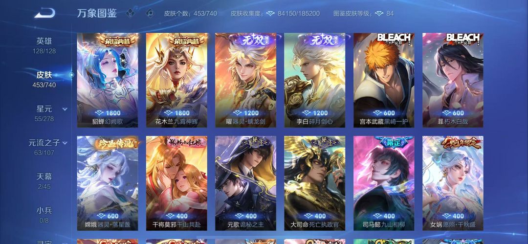 全英雄曜全皮女娲全皮☆至尊宝☆器灵·螭龙剑☆朽木白哉☆霜北刀☆黑崎一护☆祈雪灵祝☆白虎志☆详情细看