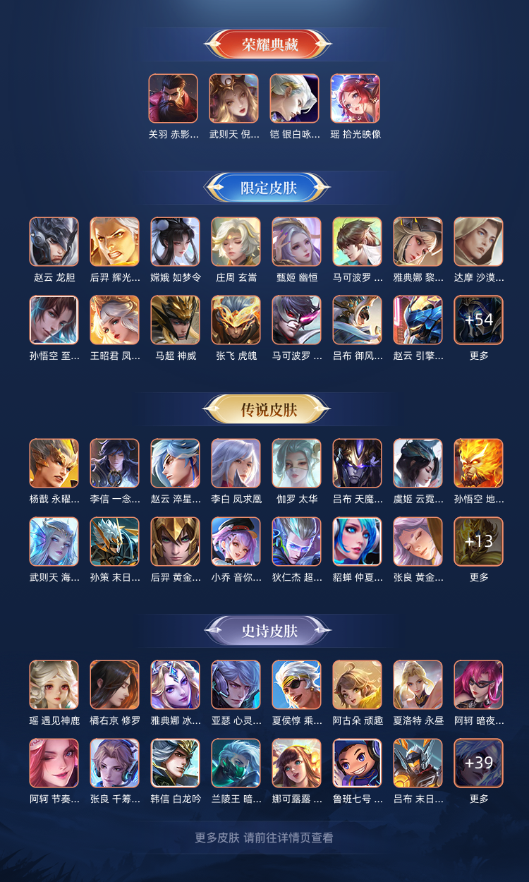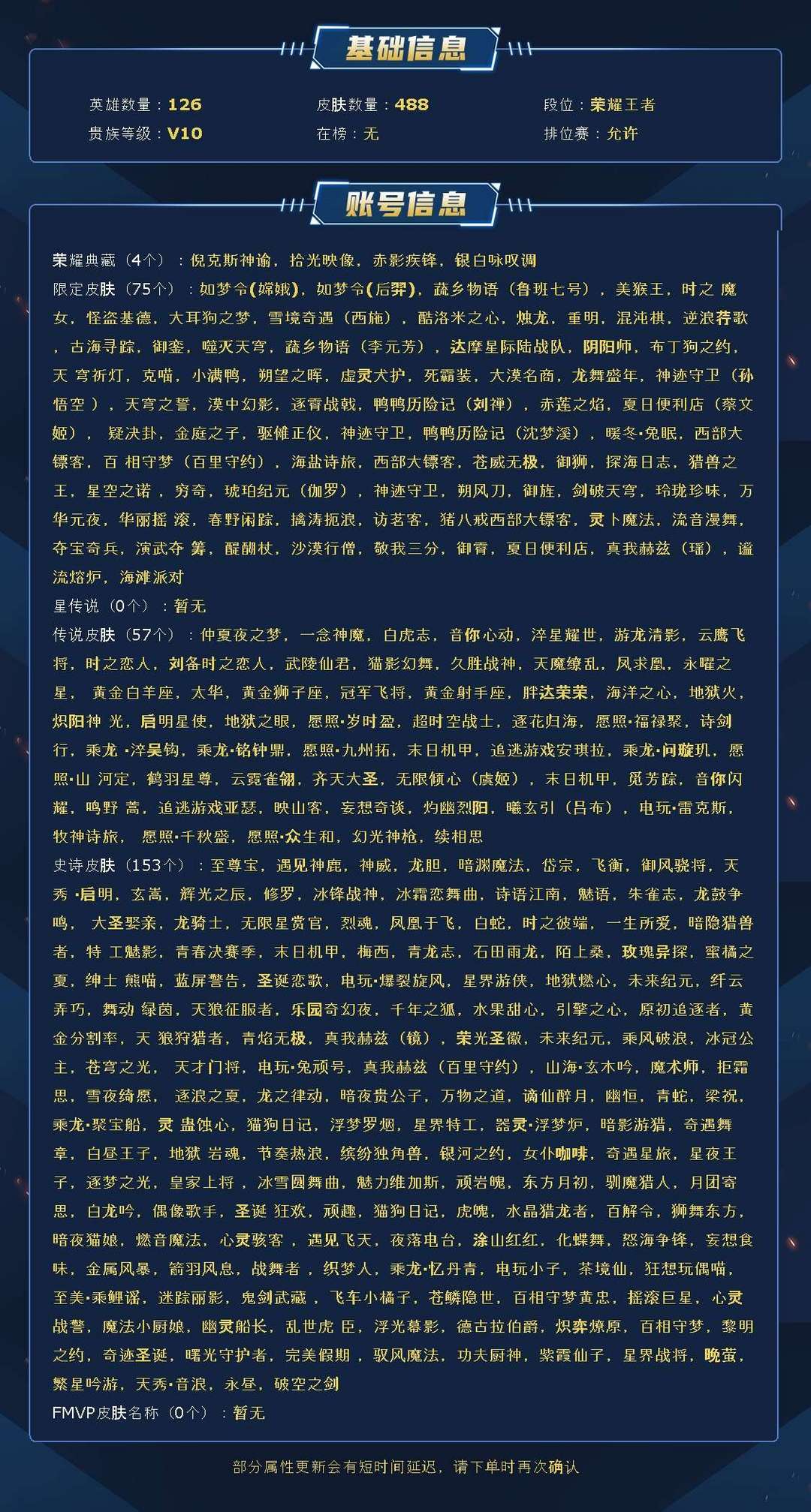 荣耀王者 V10 4典藏490皮 天魔缭乱/至尊宝/梅西/青龙志/白虎志/朱雀志/久胜战神/飞衡