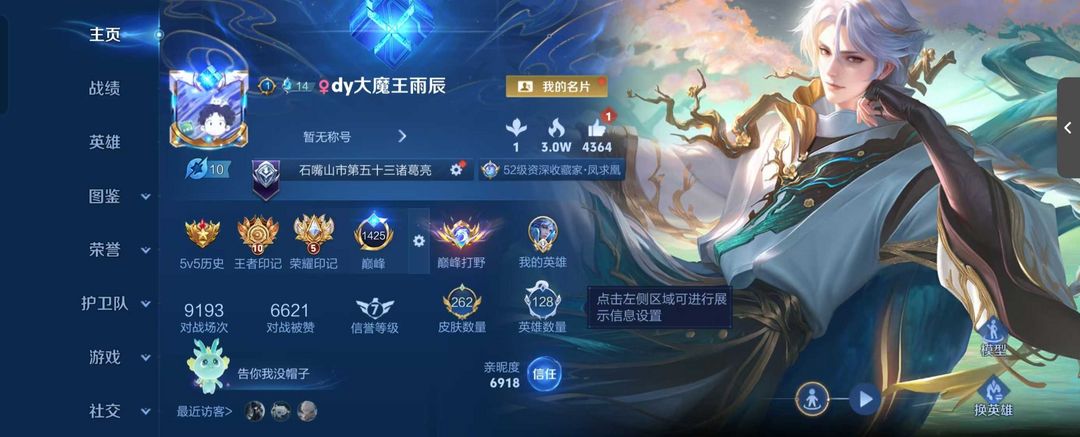 巅峰已开⭐历史1.7w国一诸葛亮⭐主页巅峰中路⭐巅峰小魔方⭐带妹必备⭐打野男神号⭐五排开黑首选