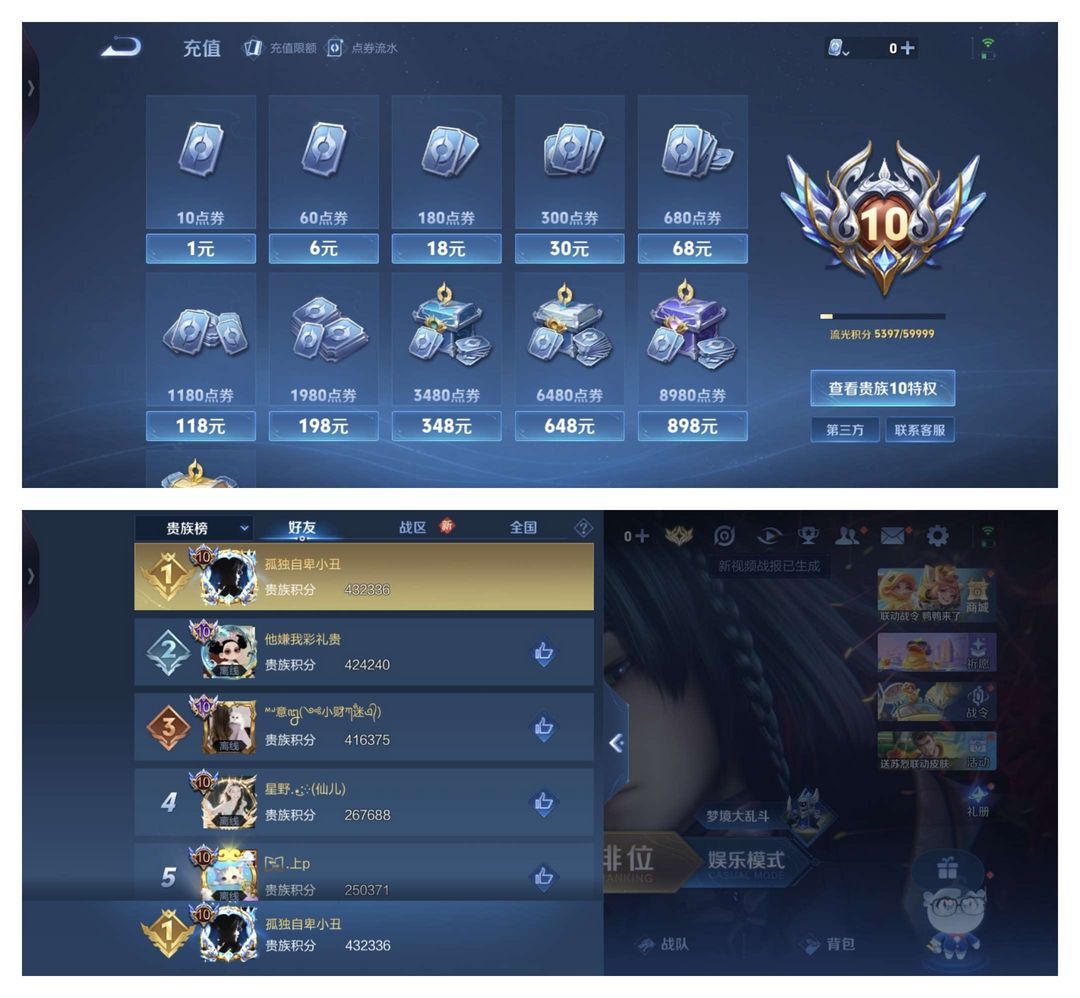 限制: 撤单率<70%才可租用此帐号装备描述:此号ios系统!可加好友可发言!朋友开黑最佳选择!进错区请选择154区!请将游戏更新好以后把自己的游戏账号退出再下单! 号主协助成功上不去游戏可以尝试以下方式(游戏期间千万别切屏,会掉线) 1:启动游戏到游戏登录界面无反应(可以尝试点击V图标) 2:重启手机 重新进app启动游戏 特别声明! 【乱投诉拉黑】 账号累计充值超5万!切勿开挂/分解装备/恶意骂人/等等违规行为,发现违规必追查到底 (平台登录记录,游戏登录ip 手机号 设备串号 充值付款记录 不要侥幸现在网警都能调到你的所有行为记录 就算盗用他人信息也一样能查到你头上) 按账号充值金额=起诉/刑事立案/追责赔偿!!!!